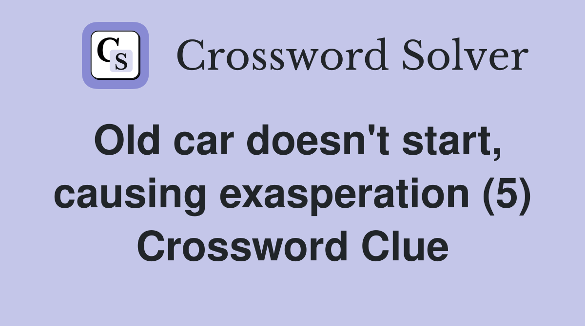 Old car doesn #39 t start causing exasperation (5) Crossword Clue