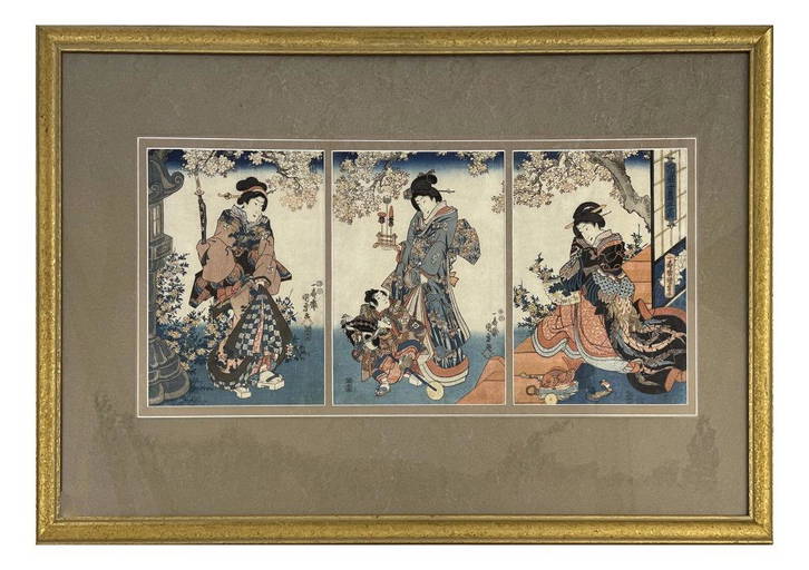 KUNIHARU (FL 1840S 1850S) quot YOUNG PRINCE WITH COURT LADIES 1849 1853