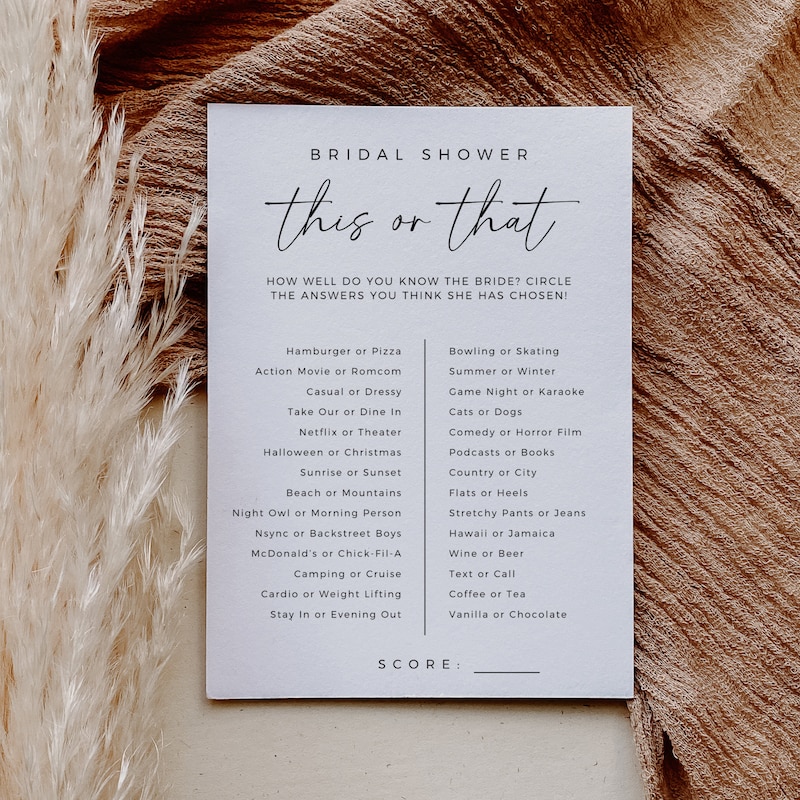 Over or Under Bridal Shower Game Bachelorette Party Newlywed Games