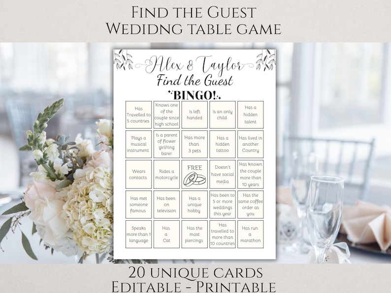 Wedding Guest Bingo Game: Printable Icebreaker (editable PDF) Etsy