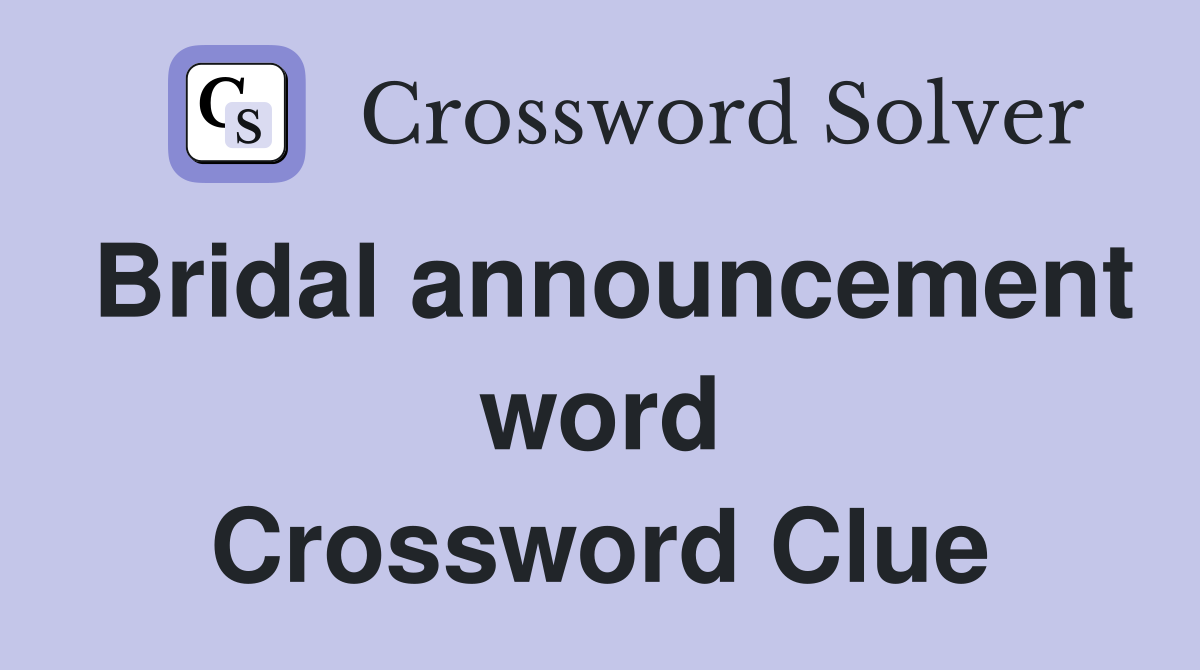 Bridal announcement word Crossword Clue Answers Crossword Solver