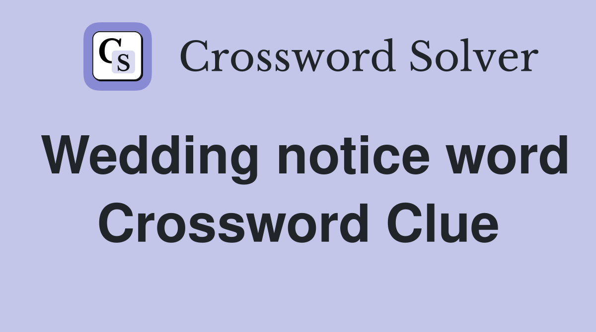 Wedding notice word Crossword Clue Answers Crossword Solver