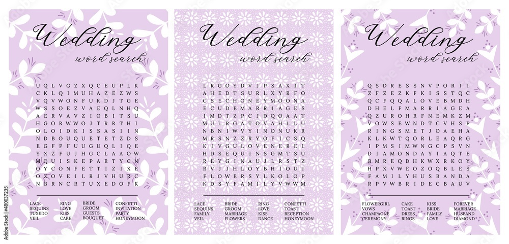 Custom Wedding Crossword Puzzle Template Personalized Bridal Shower