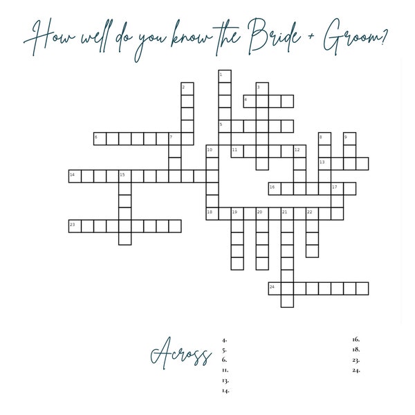 Custom Large Format Bridal Crossword Puzzle Bridal Party Game Template