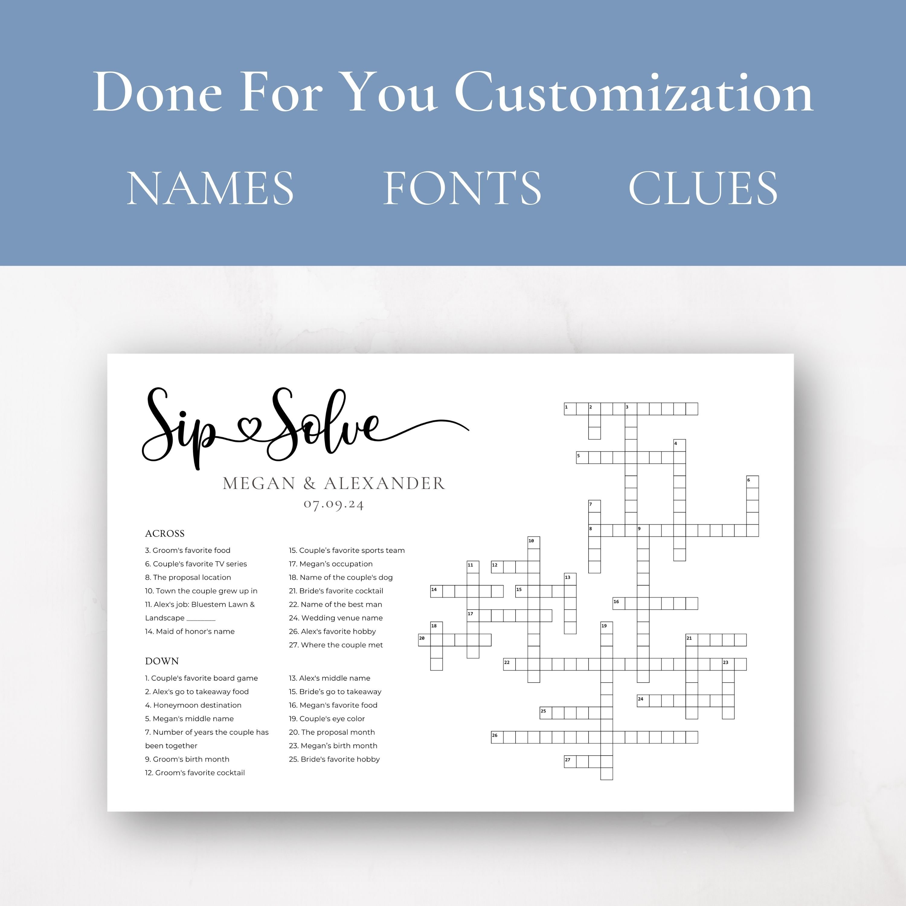 Custom Wedding Crossword Puzzle Template Personalized Sip and Solve