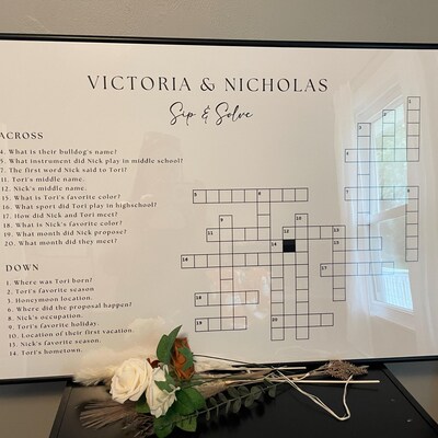 Custom Wedding Crossword Giant Sip and Solve Minimalist Crossword Sip