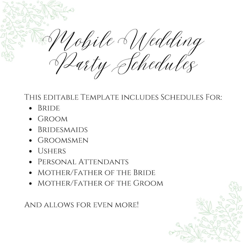 Editable Bridal Party Schedule Template Includes All Roles Etsy