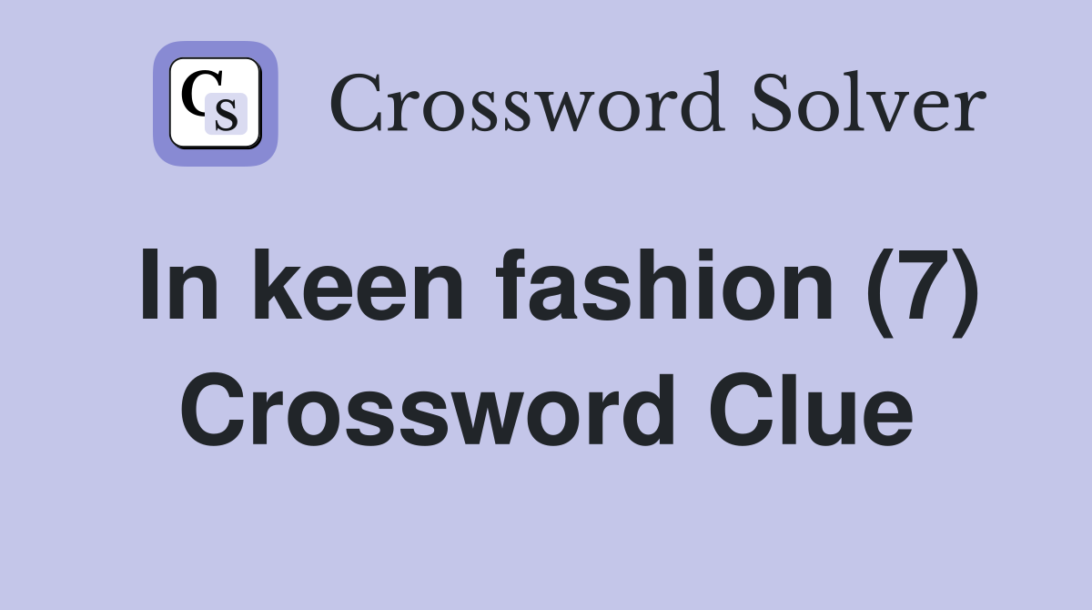 In keen fashion (7) Crossword Clue Answers Crossword Solver