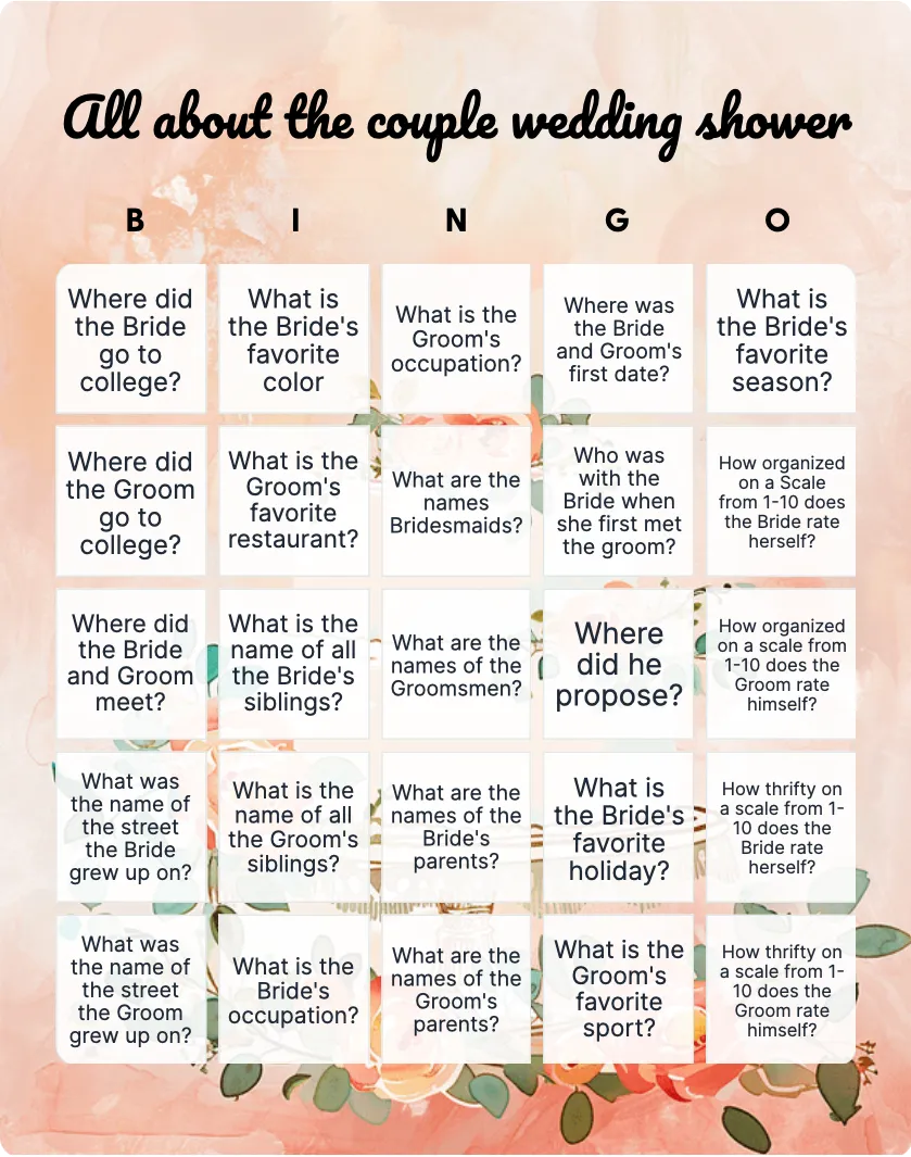 Wedding Shower Bingo Template