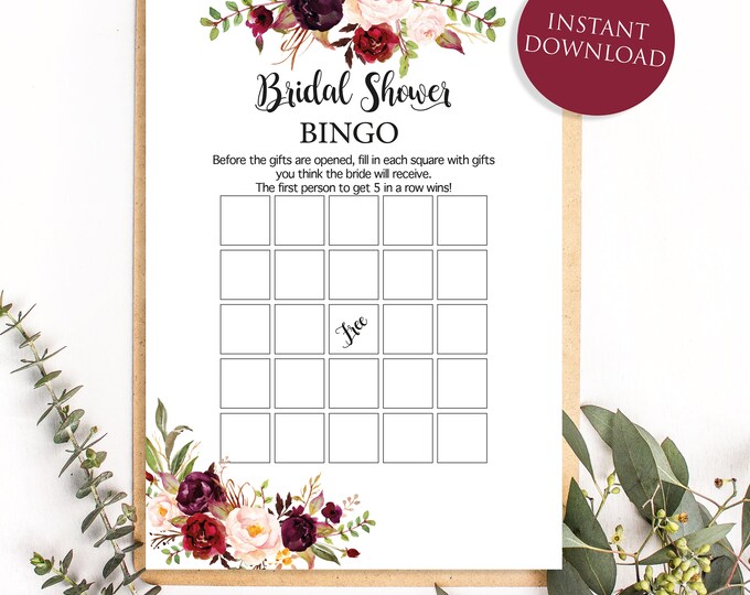 Floral Bridal Bingo Cards Prefilled Blank and Template LittleSizzle