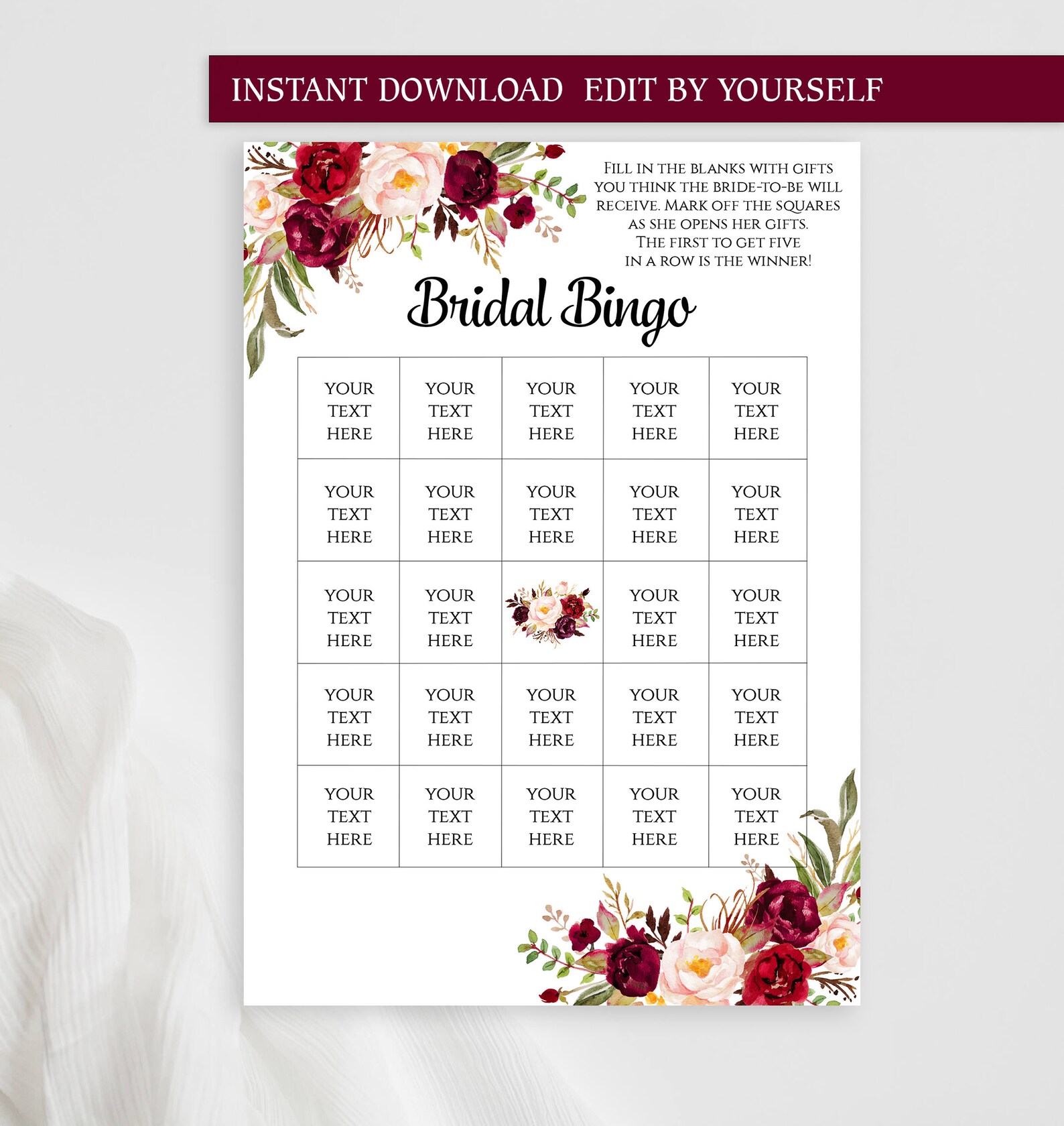 Bridal Shower Bingo Template Instant Download Editable Etsy