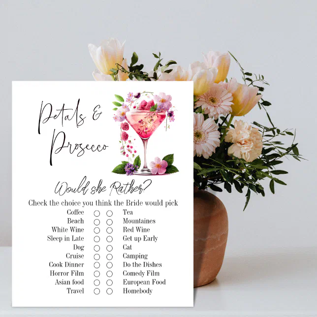 Petals Prosecco Floral Bridal Shower Game Card Zazzle