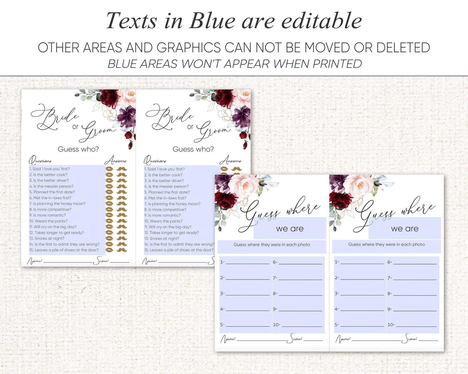 Fun Bridal Shower Games Editable Bridal Shower Game Templates Wedding