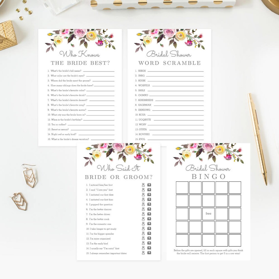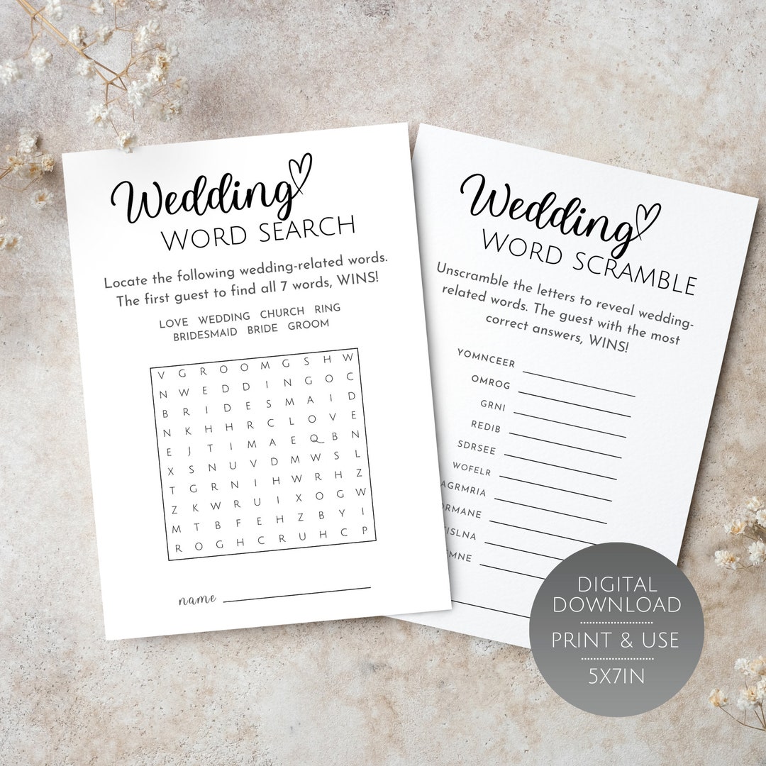 Printable Bridal Shower Games Bundle Bingo Word Scramble Etsy