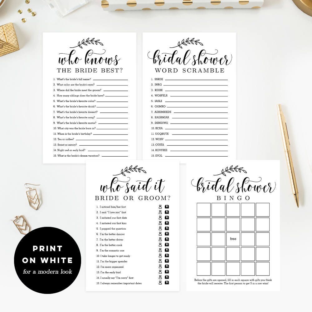Bridal Shower Games Printable Bridal Shower Games Bundle Etsy
