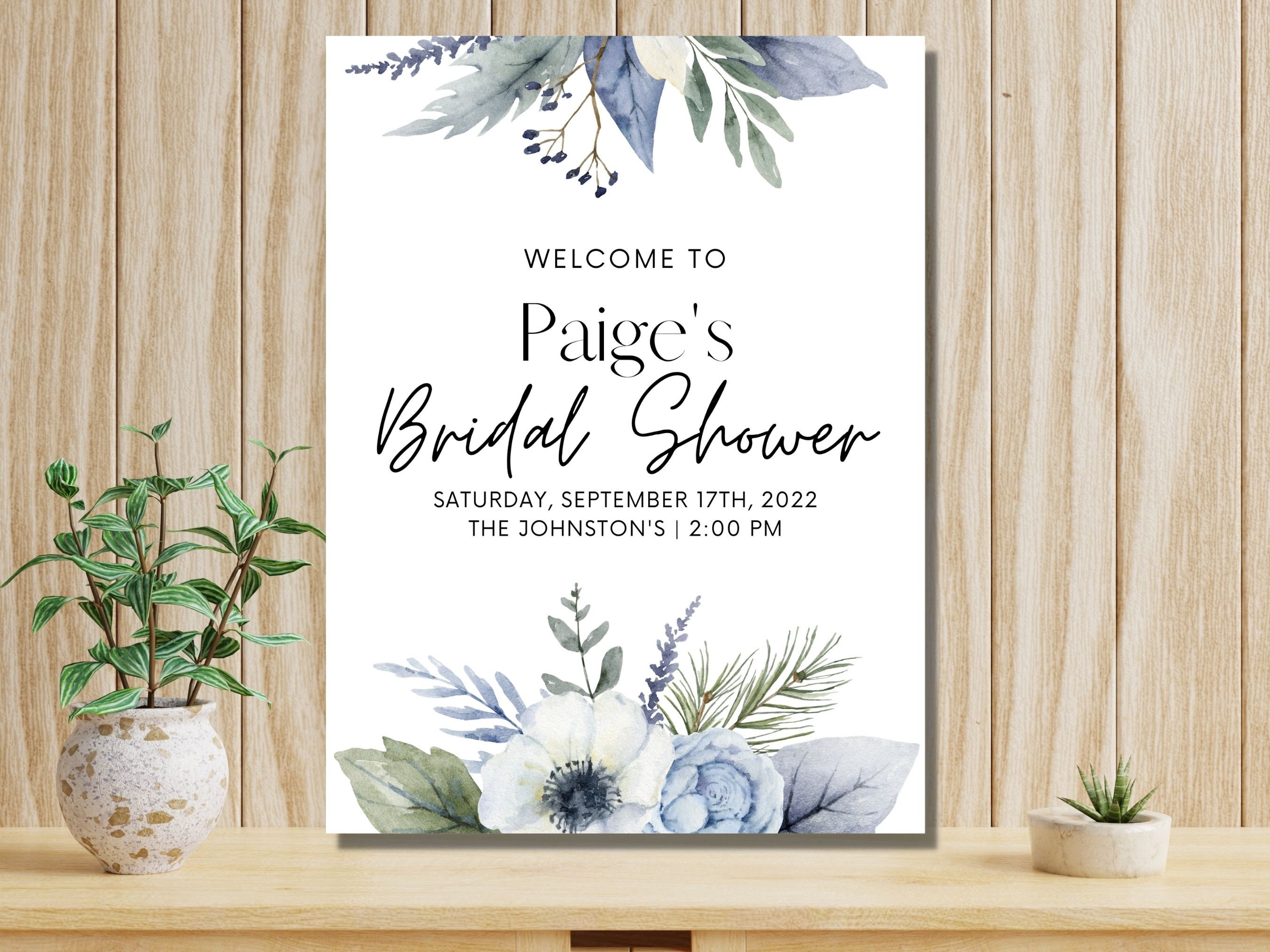 Dusty Blue Bridal Shower Welcome Sign Template Bridal Shower Poster
