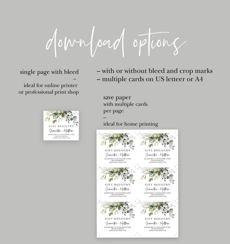 Gift Registry Card Template Editable Wedding Insert Bridal Shower