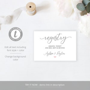 Registry Card Template Bridal Shower Registry Insert Wedding Etsy