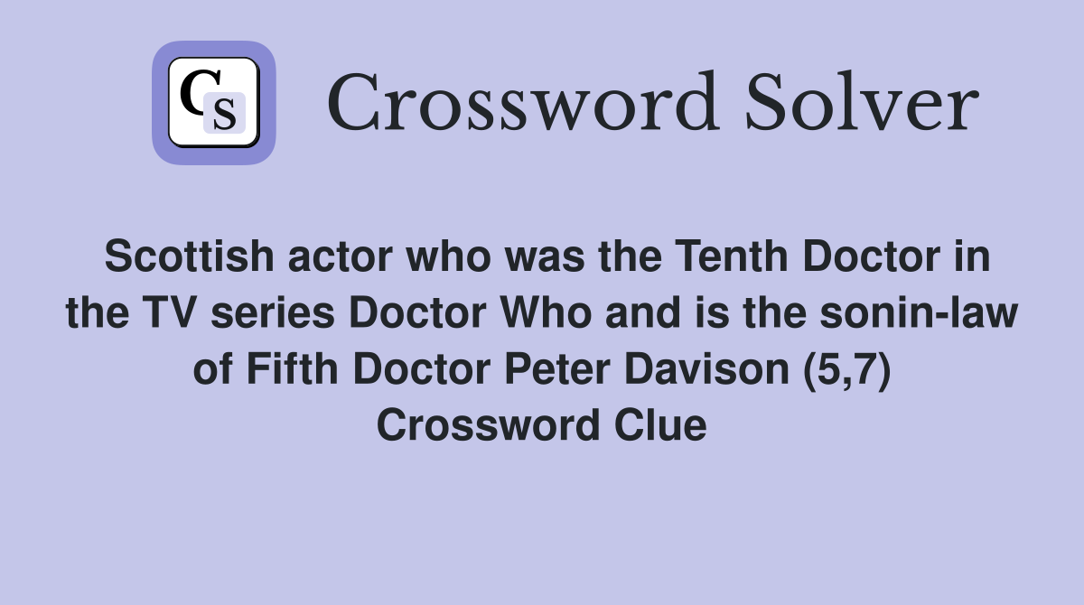 Scottish actor who was the Tenth Doctor in the TV series Doctor Who and