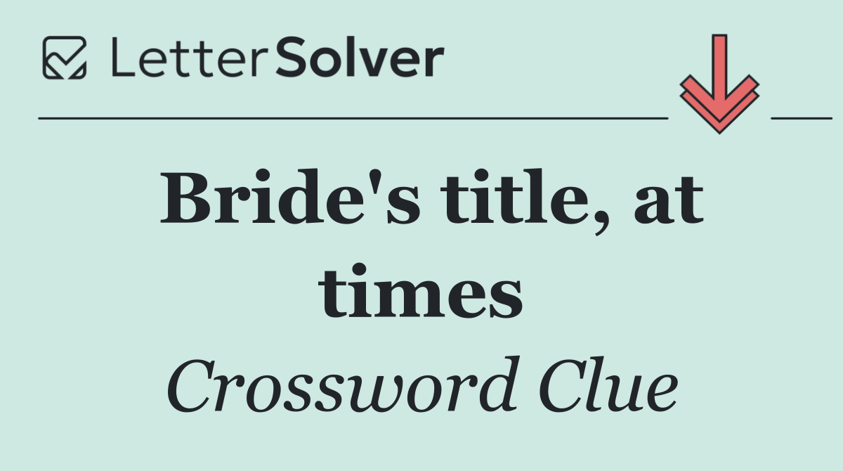 Daily Themed After wedding title for a bride for short Crossword Clue