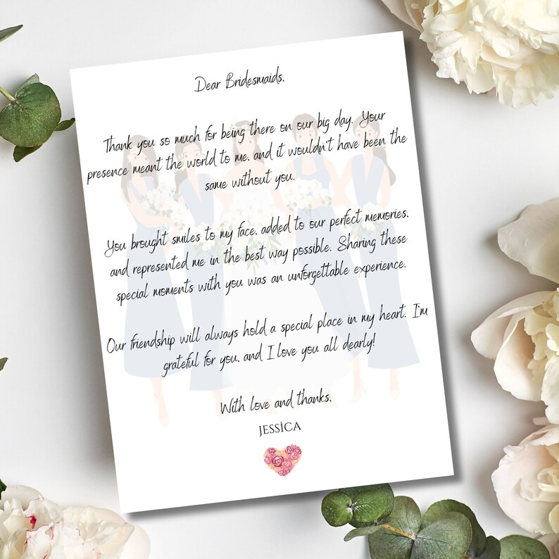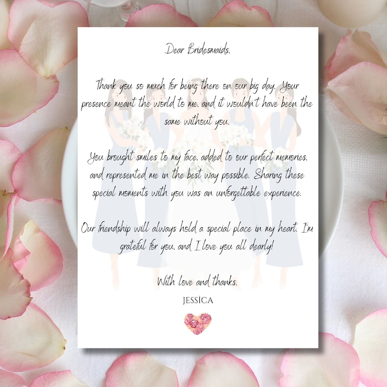 Thank You Note to Bridesmaids Before Wedding Canva Template Instant
