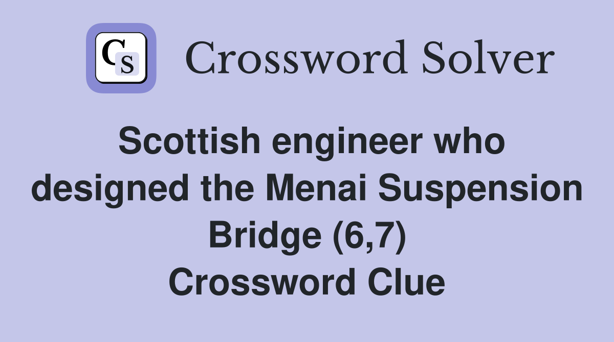 Scottish engineer who designed the Menai Suspension Bridge (6 7