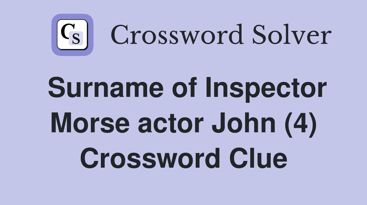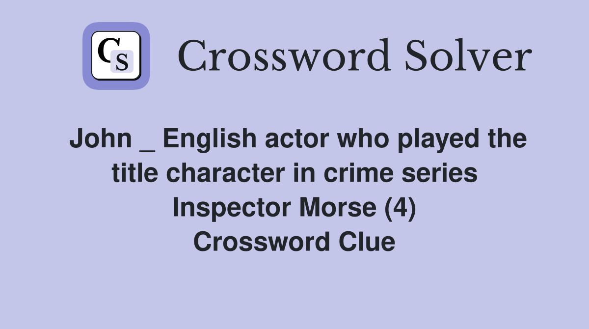 Surname of Inspector Morse actor John (4) Crossword Clue Answers