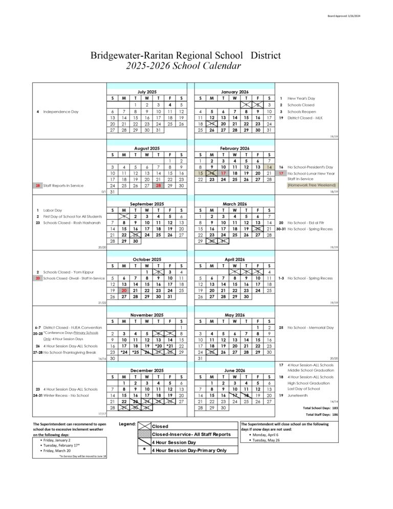 Bridgewater Raritan Regional School District Calendar 25 26 Revised