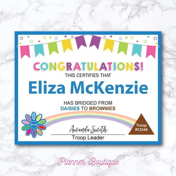 NEW Brownies Troop Bridging Ceremony Certificate Fillable Girl Scouts
