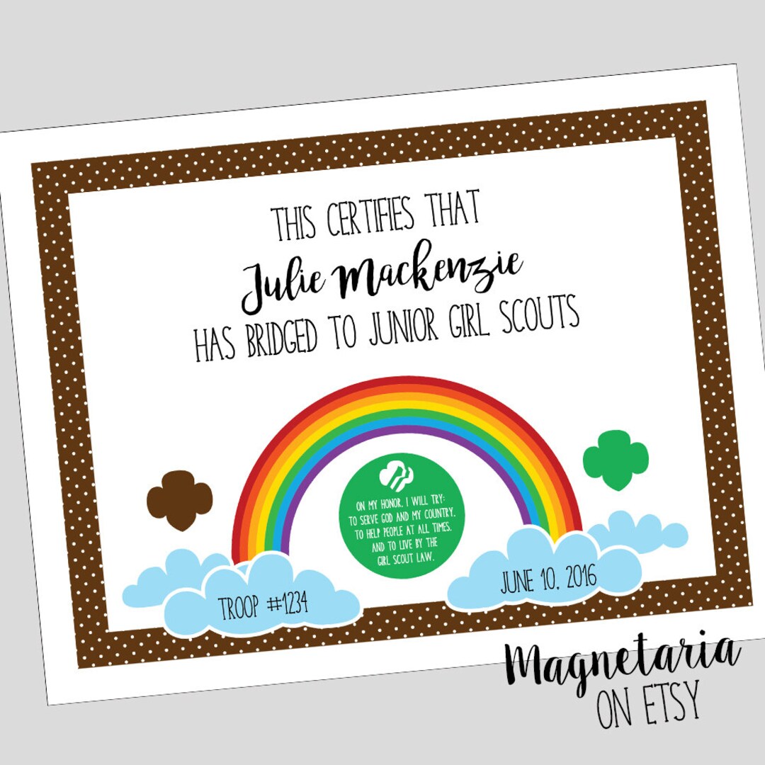 Girl Scouts Brownies to Juniors Bridging Certificate Etsy Girl
