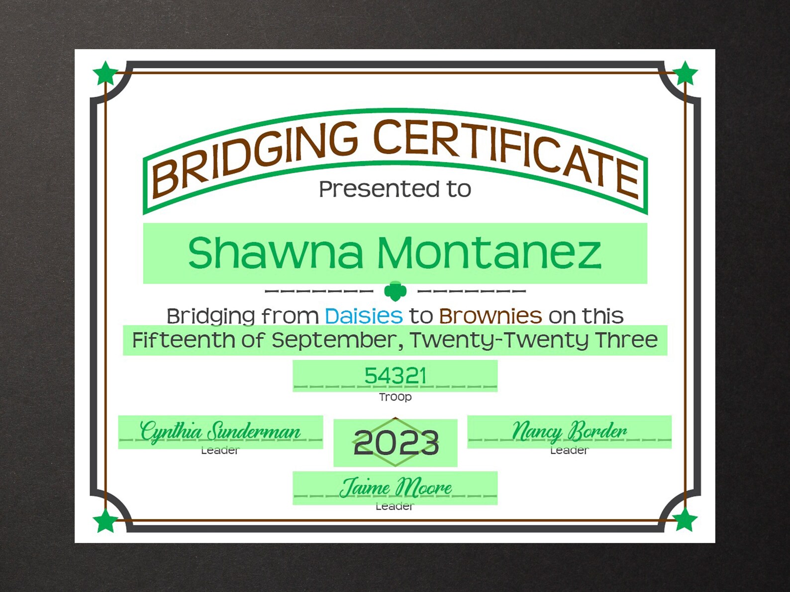 Daisy to Brownie Bridging Certificate Girl scout troop Girl scouts