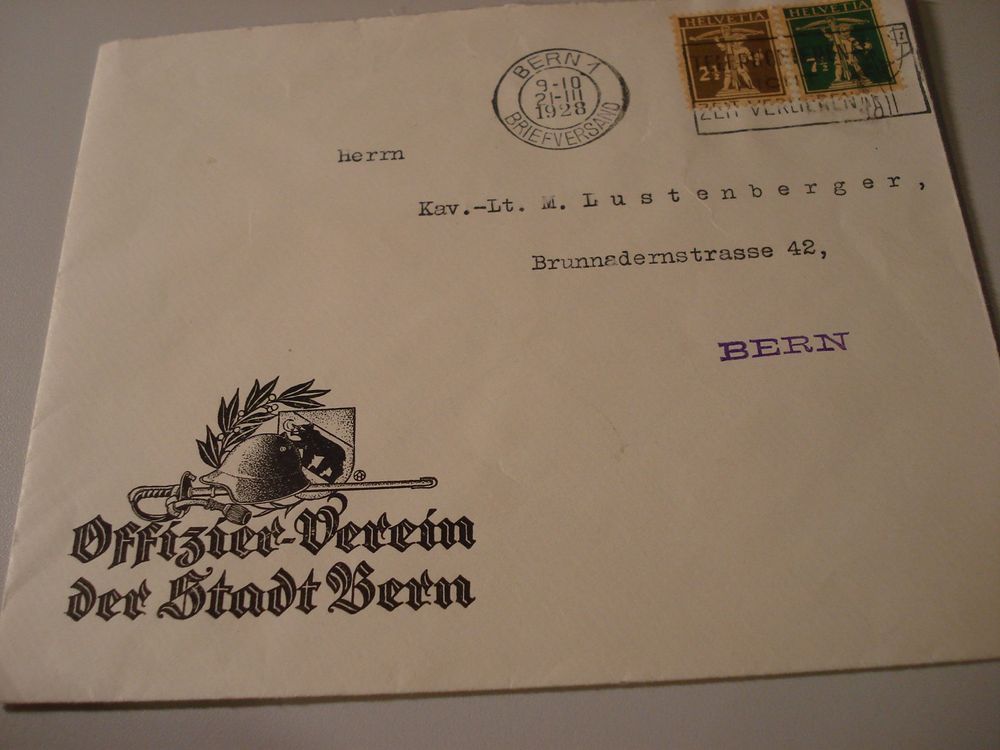 Brief 1928 Offizier Verein Stadt Bern schöne Tellenbubfran (Gebraucht
