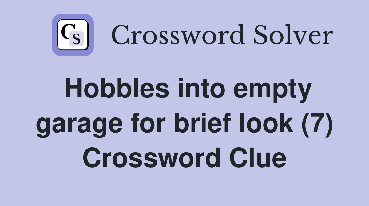 Hobbles into empty garage for brief look (7) Crossword Clue Answers