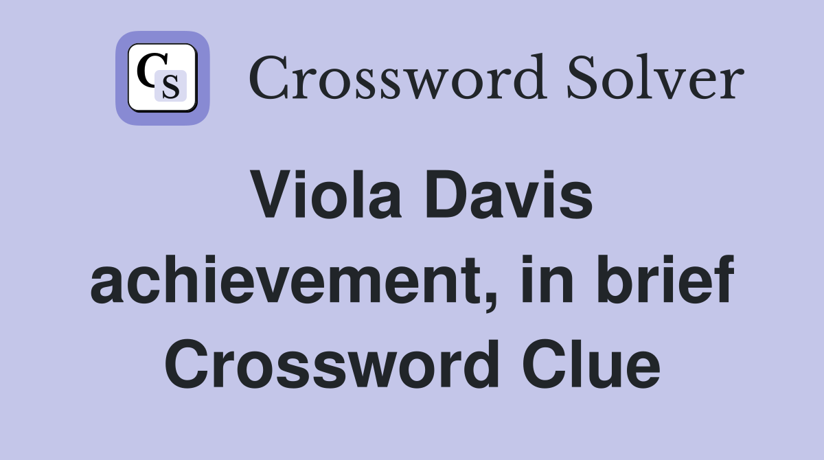 Viola Davis achievement in brief Crossword Clue Answers Crossword