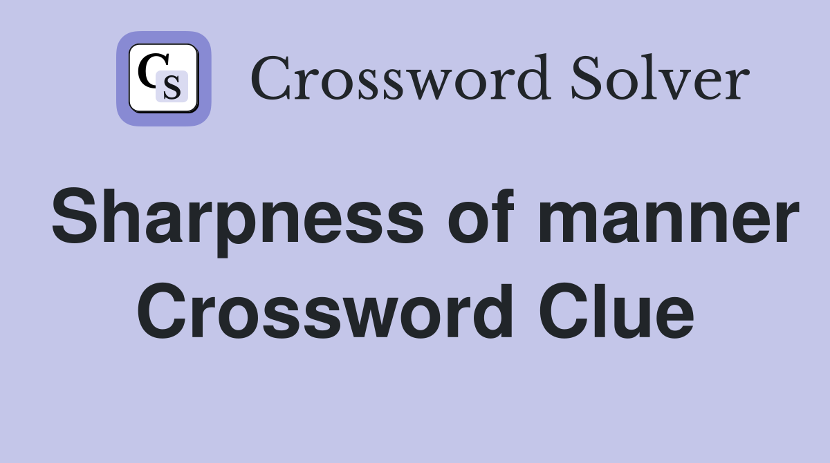 Sharpness of manner Crossword Clue Answers Crossword Solver