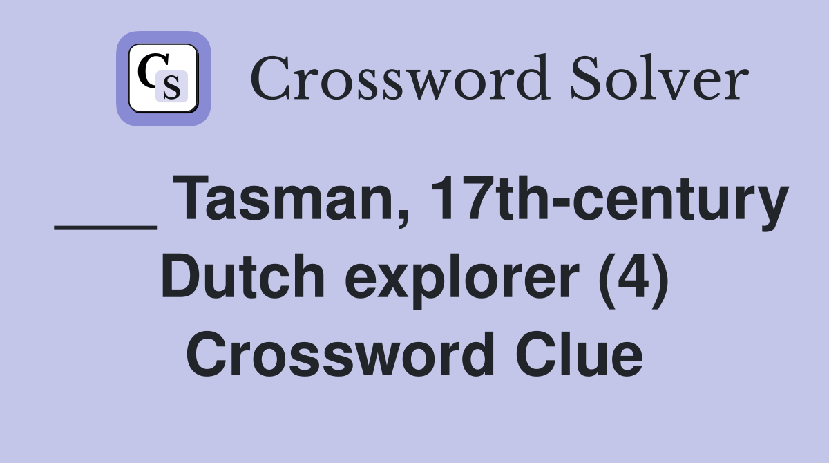Tasman 17th century Dutch explorer (4) Crossword Clue Answers