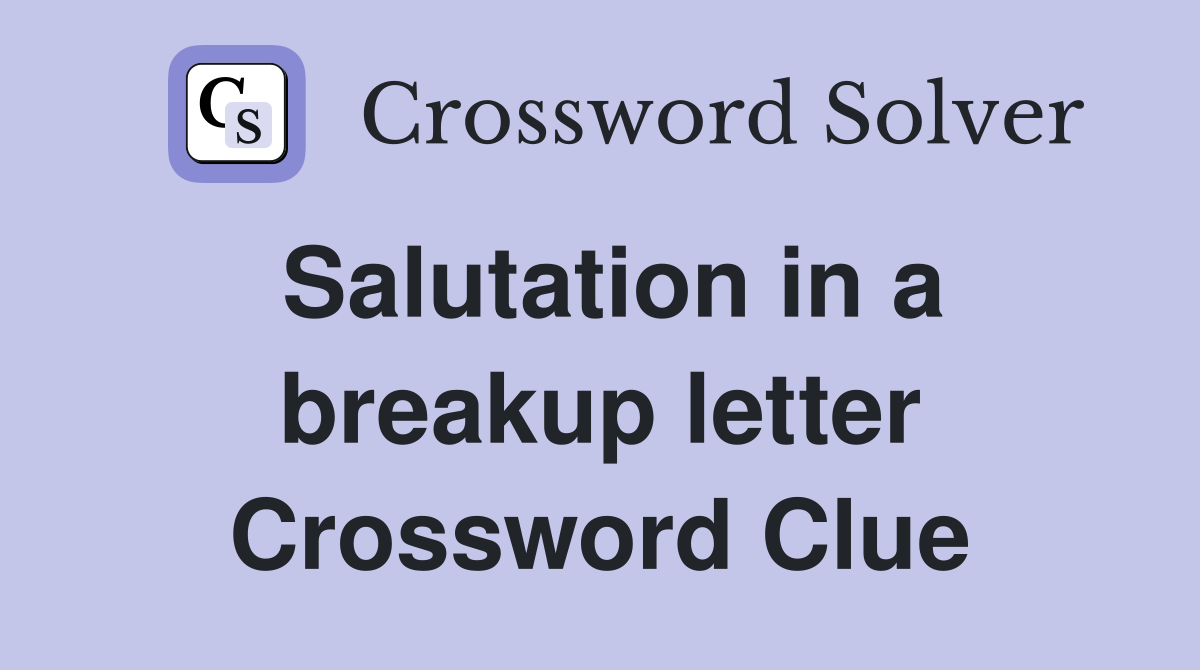 Salutation in a breakup letter Crossword Clue Answers Crossword Solver