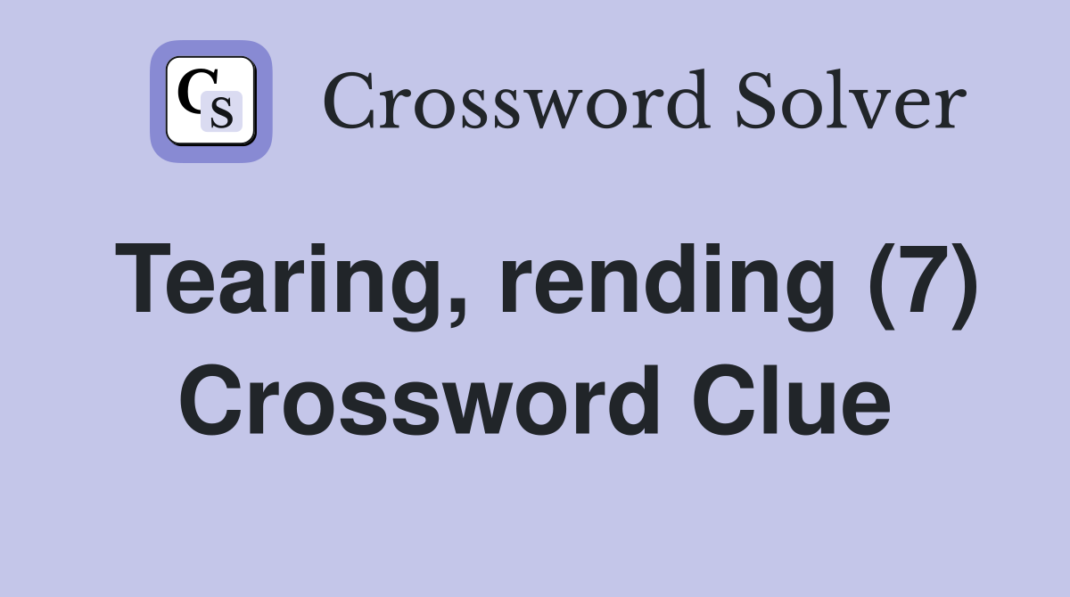 Tearing rending (7) Crossword Clue Answers Crossword Solver
