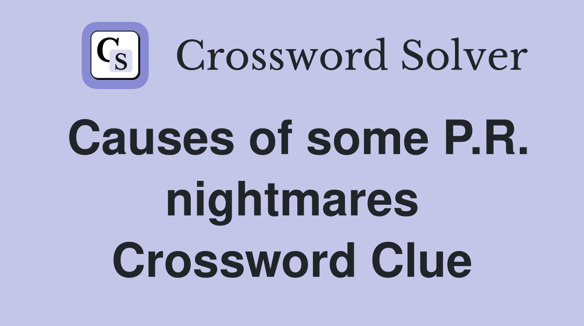 Causes of some P R nightmares Crossword Clue Answers Crossword Solver