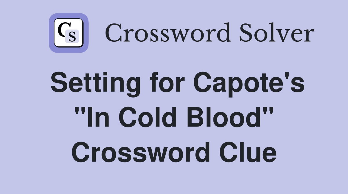 Setting for Capote #39 s quot In Cold Blood quot Crossword Clue Answers