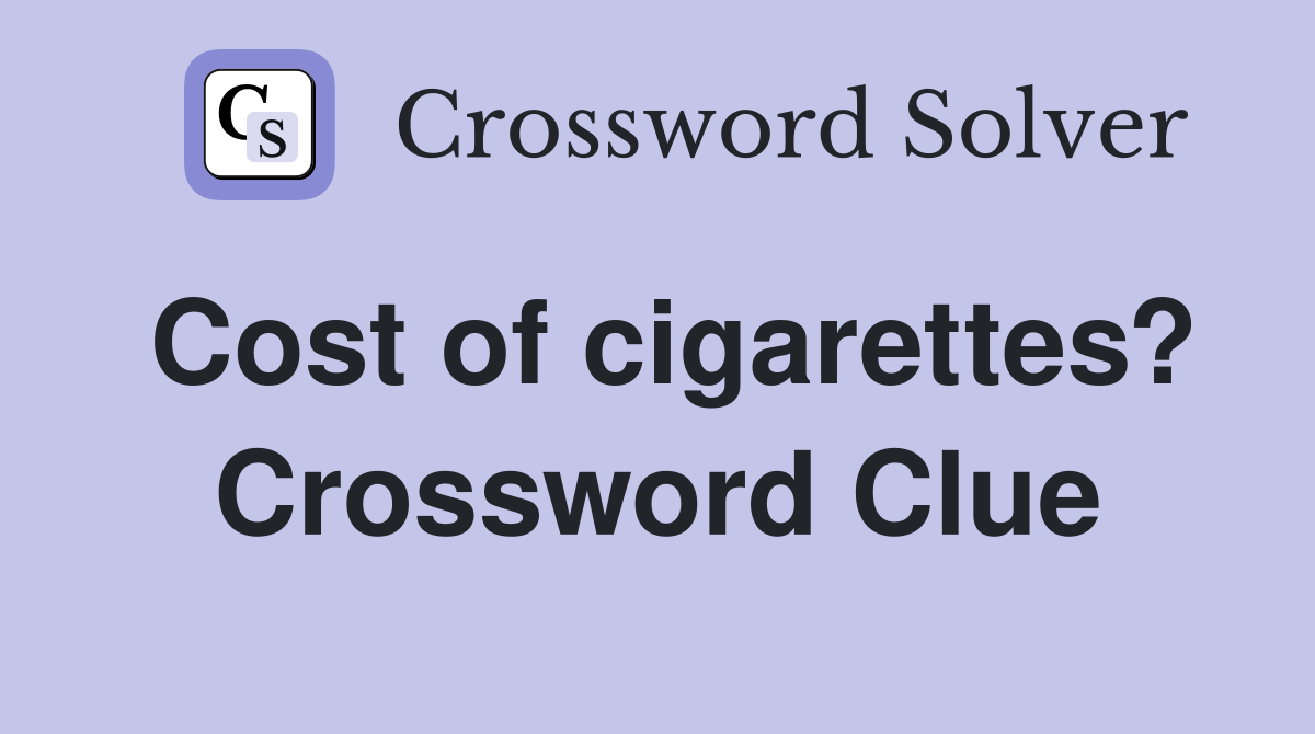 Cost of cigarettes? Crossword Clue Answers Crossword Solver