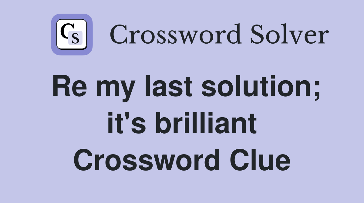 Re my last solution it #39 s brilliant Crossword Clue Answers