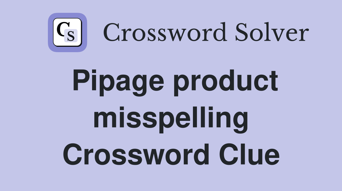 Pipage product misspelling Crossword Clue Answers Crossword Solver