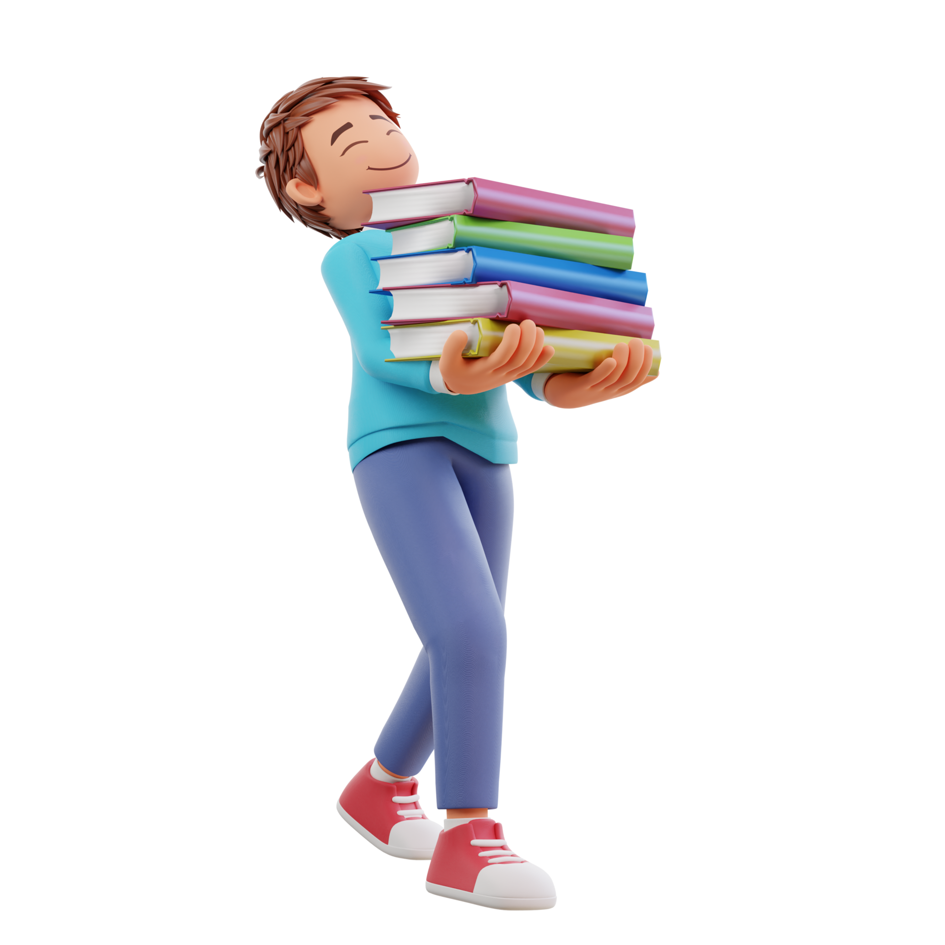 Cute boy going to school and bring a books cartoon 3d icon illustration