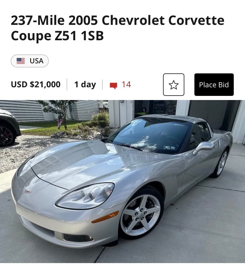 A 2005 C6 with only 237 miles on Bring a Trailer CorvetteForum