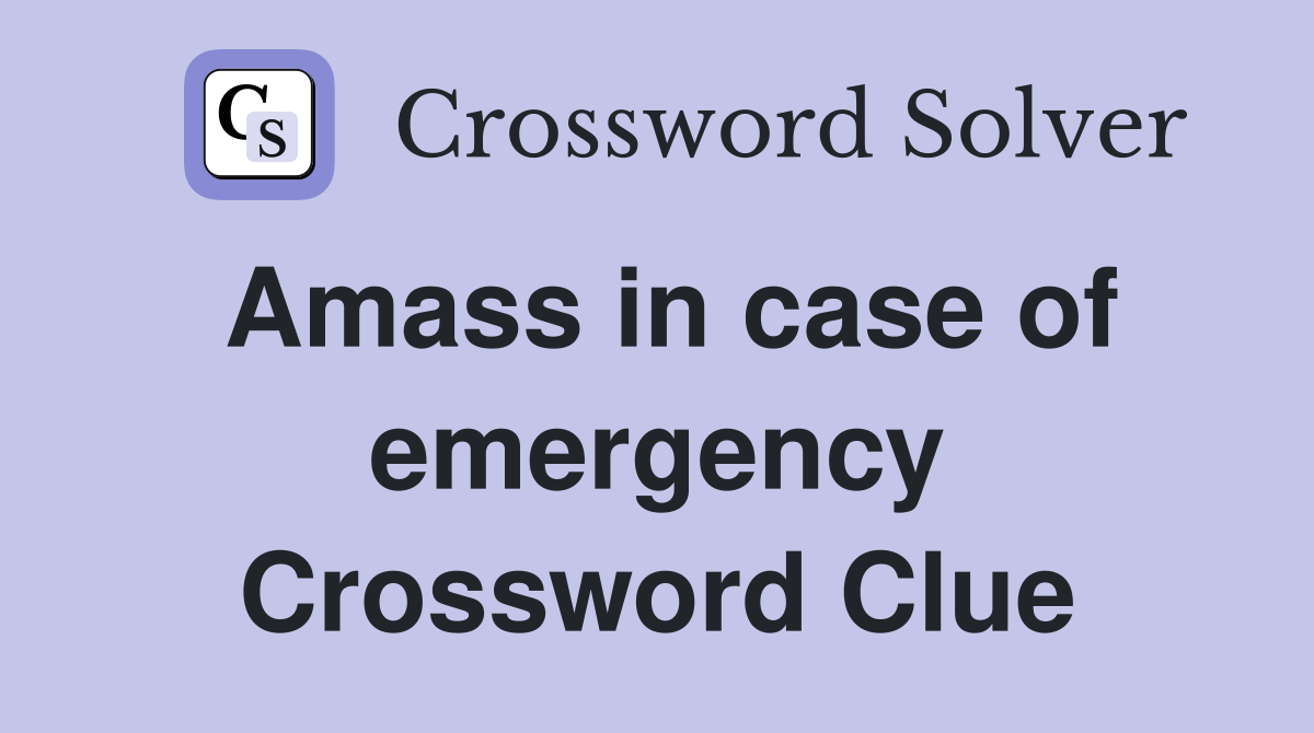 Amass in case of emergency Crossword Clue Answers Crossword Solver