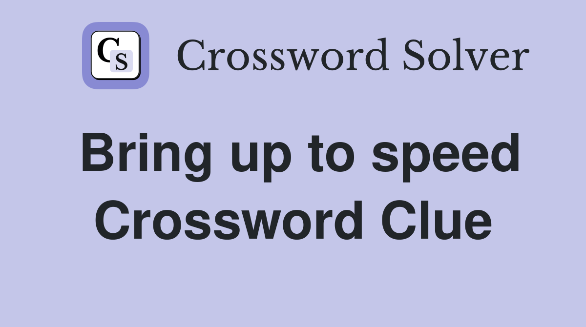 Here are some of the images for Bring Up To Speed Crossword Clue that we found in our website database.