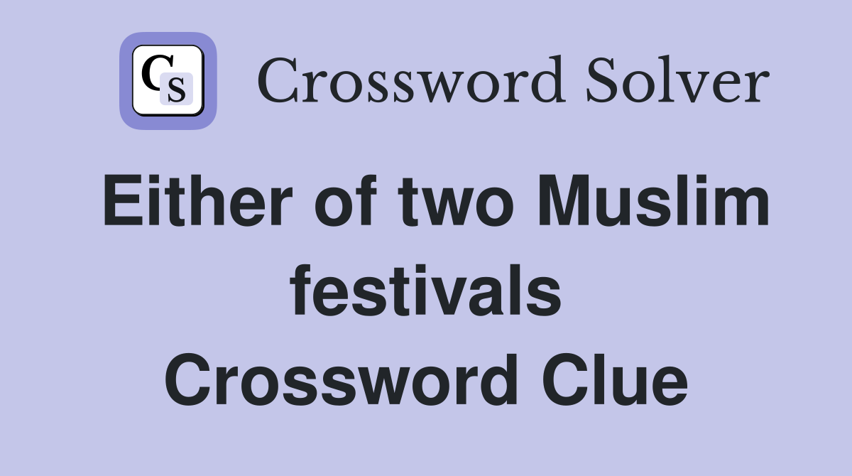 Either of two Muslim festivals Crossword Clue Answers Crossword Solver