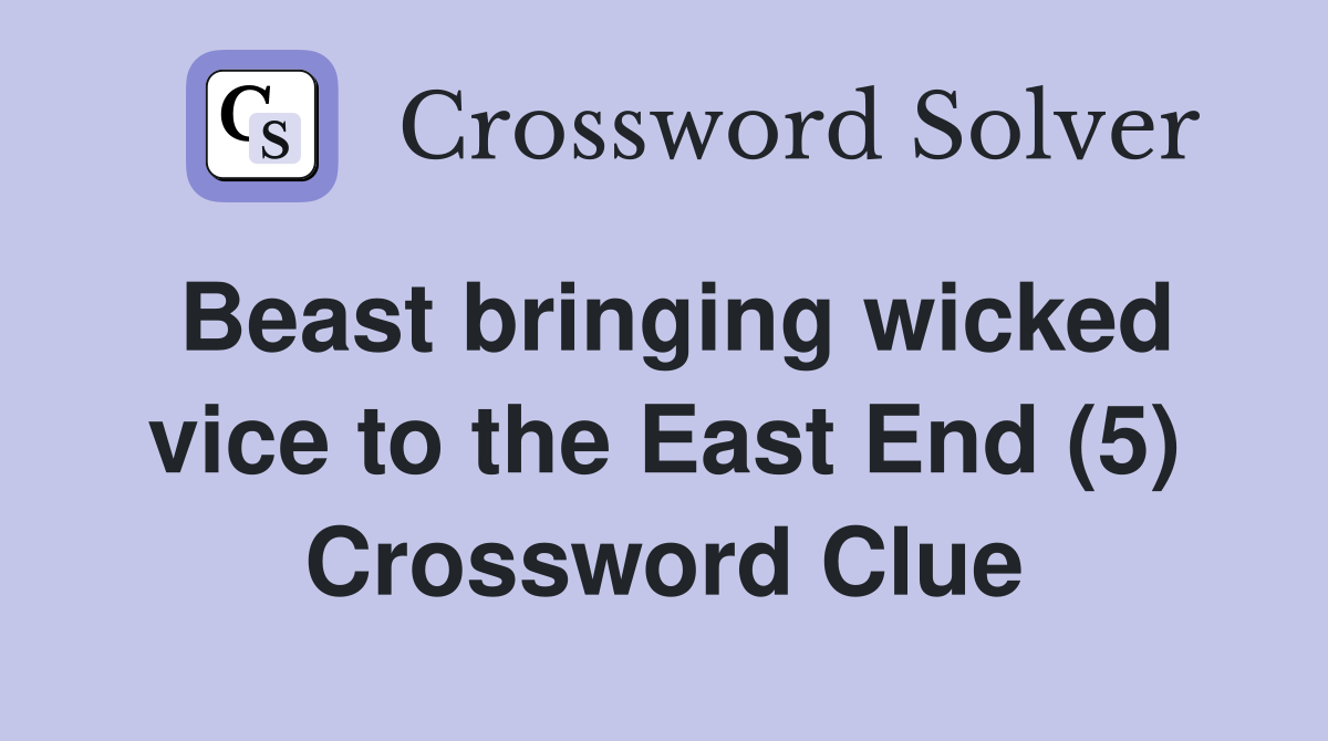 Beast bringing wicked vice to the East End (5) Crossword Clue Answers