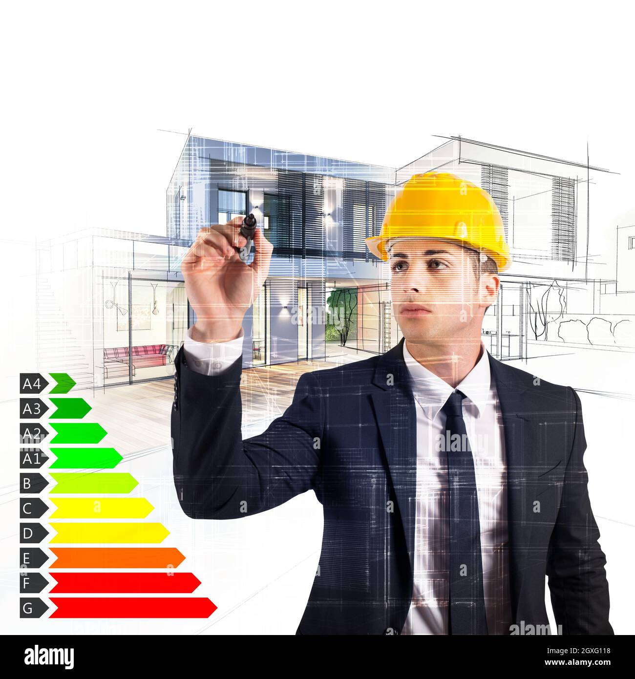 Architect designs a house and energy certification Stock Photo Alamy